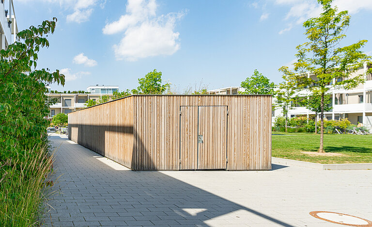 - abgeschlossene, überdachte Mülltonnenhäuser