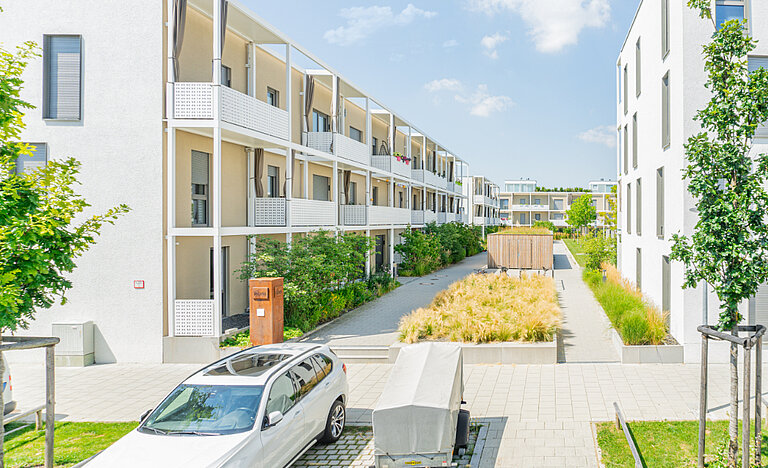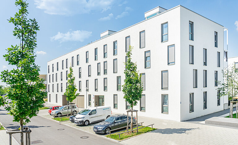 Die Wohnanlage Riem wurde von Juni 2015 bis Februar 2017 neu erbaut und ist in der Messestadt gelegen, die weltweiter Gastgeber für Fachmessen ist. Der im Münchner Osten gelegene Stadtbezirk ist seit der Schließung des Alten Flughafens 1992 regelrecht aufgeblüht und lädt zu zahlreichen Freizeitbeschäftigungen wie das Einkaufszentrum Riem-Arcaden, Riemer Park oder die Galopprennbahn ein.